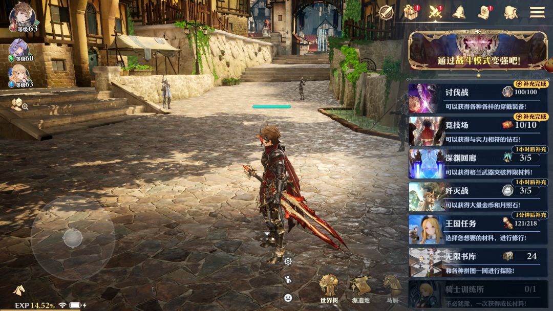 每天记得打世界boss,就是那个黄金史莱姆,分别在中午下午和晚上刷,每天只能打一次,周任务要打五次世界boss。加入骑士团可以每天换一抽和一张金ap票。
