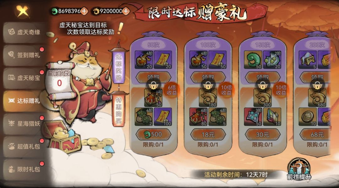 抽取次数达到目标要求还可通过购买礼包的形式获取以下奖励: