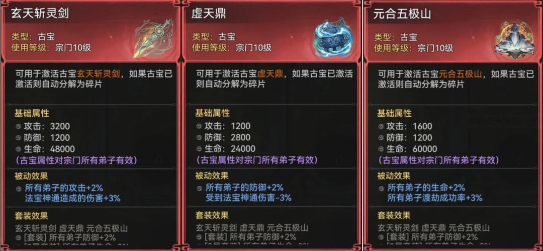 - 活动期间,祖师可通过签到赠礼、星海猎妖等活动或礼包购买获取【虚天残图】。消耗【虚天残图】可以探寻虚天秘宝,有机会获取红古宝-玄天斩灵剑、红古宝-虚天鼎、红古宝-元合五极山、橙古宝-三焰扇、橙古宝-乾蓝鼎、橙古宝-四象尺、功法-大衍决、功法-玄阴经;