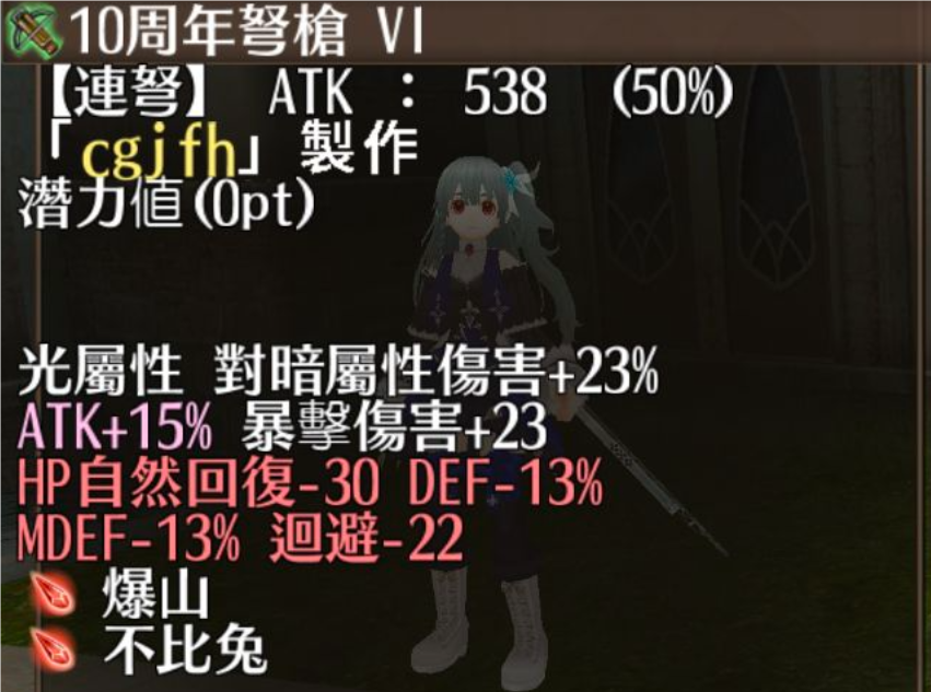 对属:15%atk,10%dex,23暴伤,23%属伤(129稳附)弩箭,弩魔用(不推荐)