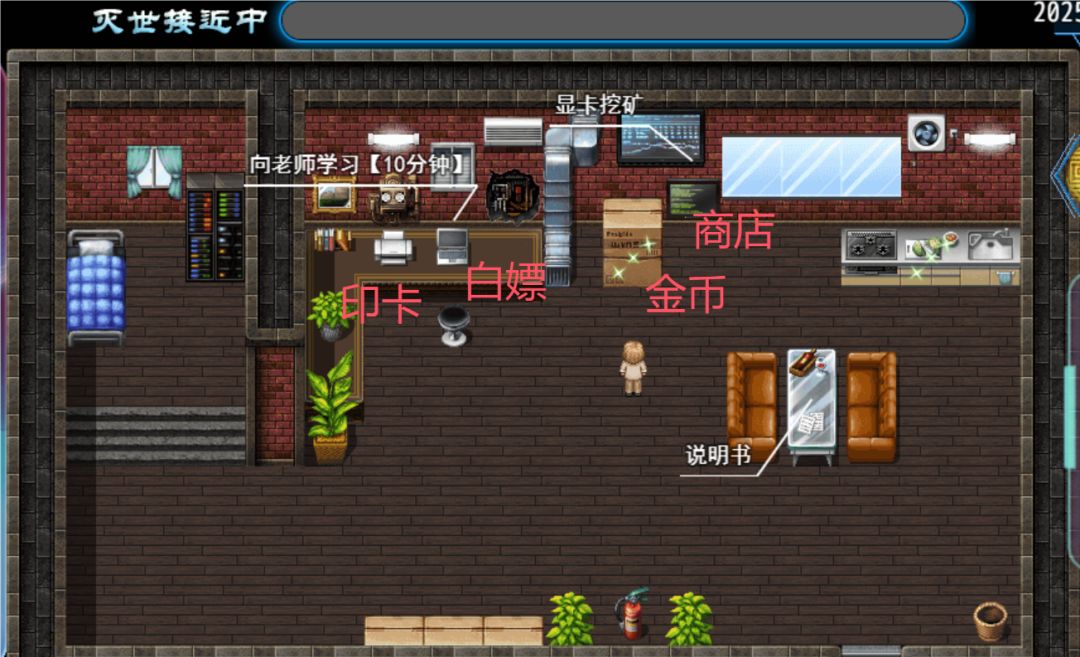 开局到闪光处拿个金币。可以把那个20-1的卡拿到打印机去印,游戏过了20小时之后可取。向老师白嫖学习需要50点体力,小心樯橹灰飞烟灭。