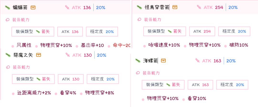 推荐度:魔箭>幽灵箭>宵樱箭>荆棘箭