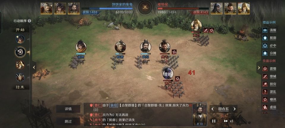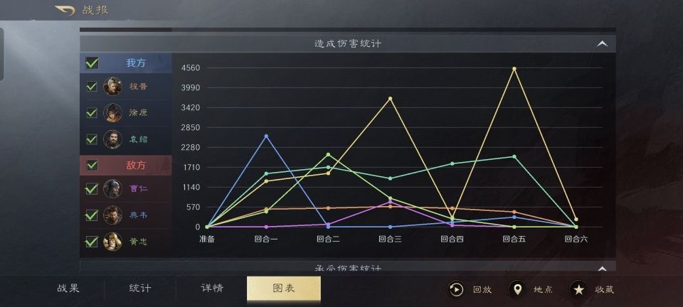徐庶的破甲伤害值相当高,加上袁绍的精确制导,在战场上的火力瞬间就一骑绝尘了。虽然开局只有区区的9千兵力,可徐庶和袁绍却能领跑全局的伤害量前两名,这既是程普舍身拉仇恨的结果,也同时离不开他们在战法效果上的极致发挥。随着曹仁和典韦在第五回合的同时溃灭,唯一幸存的黄忠也是独木难支了。这场兵力悬殊的较量,最终以袁绍、程普和徐庶方面的胜利而告终。