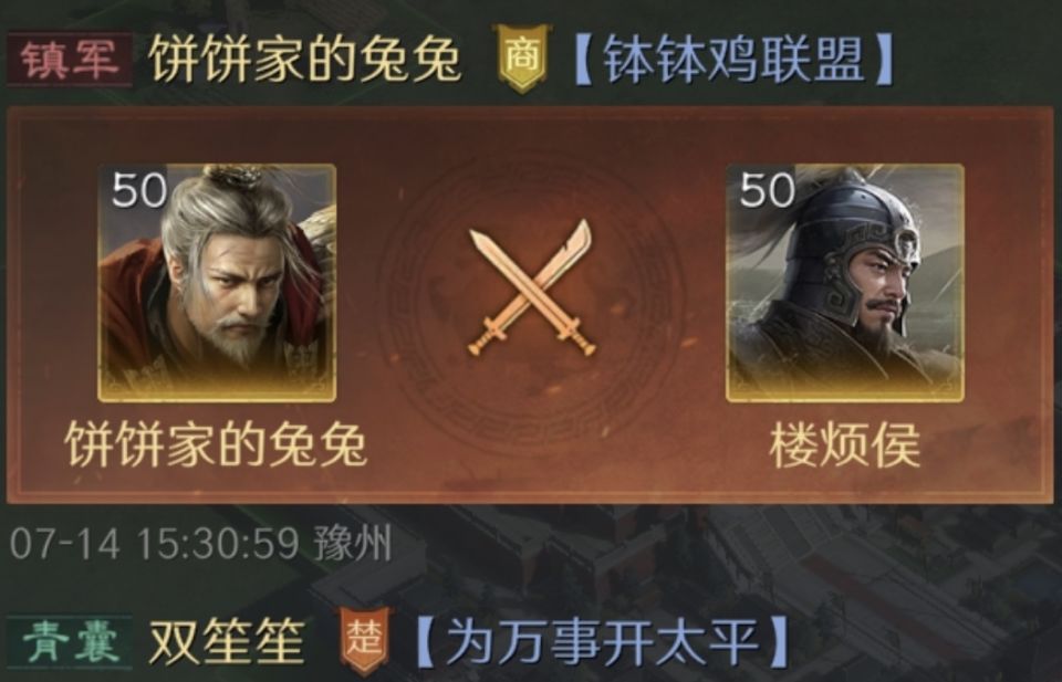 故而给本篇文章提供素材的投稿者,游戏ID名为“饼饼家的兔兔”,就非常值得隆重感谢了。因为他在世界公频里所分享的这场战斗,是自己这边的袁绍、程普和徐庶只带着9000多兵力,逆转了对面典韦、曹仁和黄忠的两万多人。肉眼乍一看上去,无论是兵力数量还是武将的质量,饼饼家的兔兔好像都显得比较弱势。可就是在这样不利的境地下,他打出了反败为胜的漂亮仗,其中蕴含的机巧是必须要仔细盘点一番的。