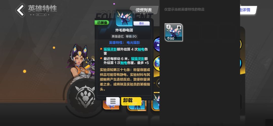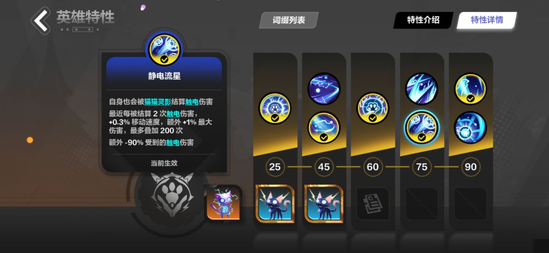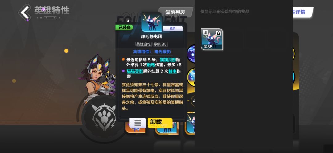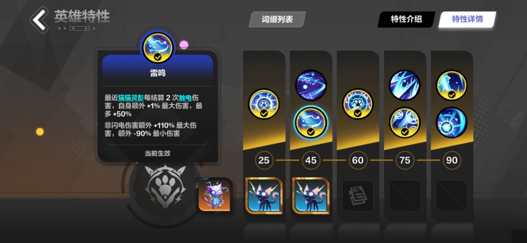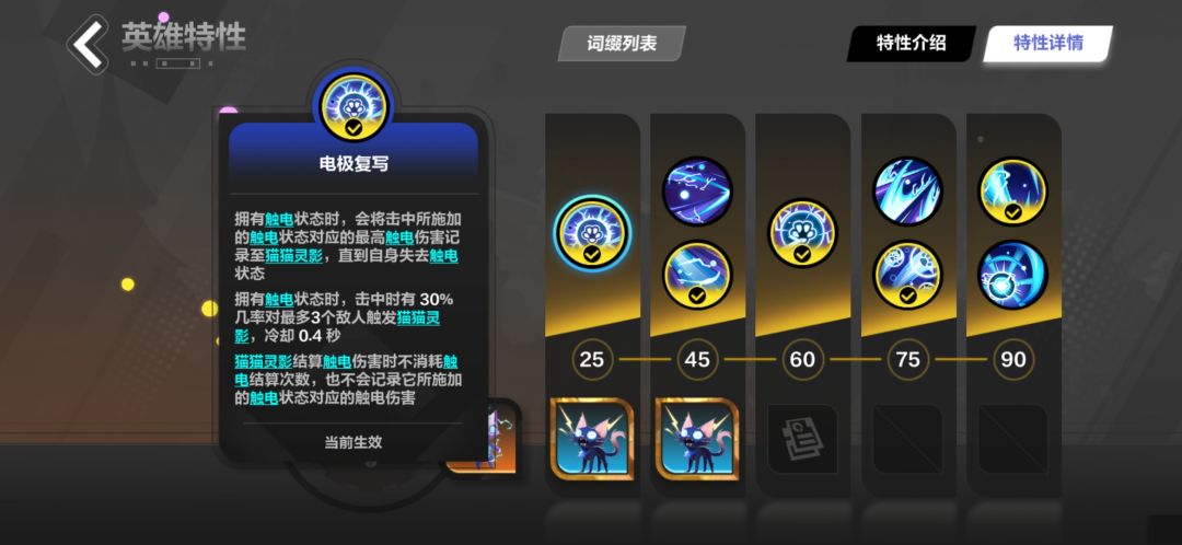 可以看到在触电状态下,猫猫灵影会记录猫2打出的最高伤害的触电伤害。这就使得提高单次伤害至关重要,所以我们需要适当的双倍伤害,暴击率,暴击伤害,最大伤害,和极高的攻击频率,确保能尽快打出最高伤害,在天赋上也可以选择跃迁,奇妙角度,来提高单次伤害收益,和获得最大伤害的几率。