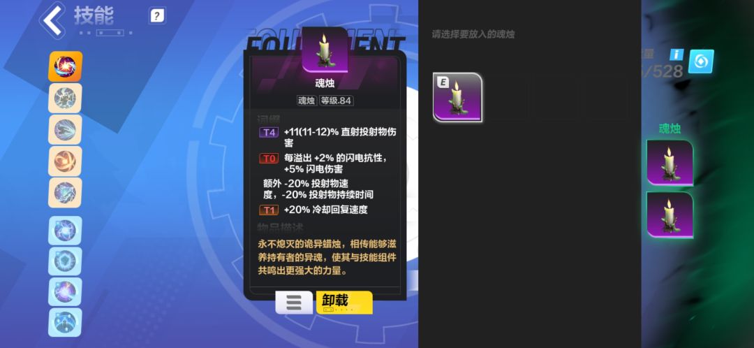 闪电抗性和冷却是我认为蜡烛上最优的两个词条。前者配合90特性,获得大量增伤,后者由于装备上最高18冷却,天赋最高8冷却,使得蜡烛上的20的冷却性价比非常高。其他的如弹射,幽怨,闪电等级,触发技能获得祝福,移动速度也都是可选项。