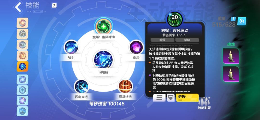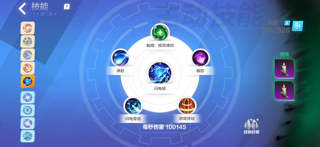 同时将闪电链放在第五个位置是为了通过机巧魔盒获得更高触发频率,达到双触发。