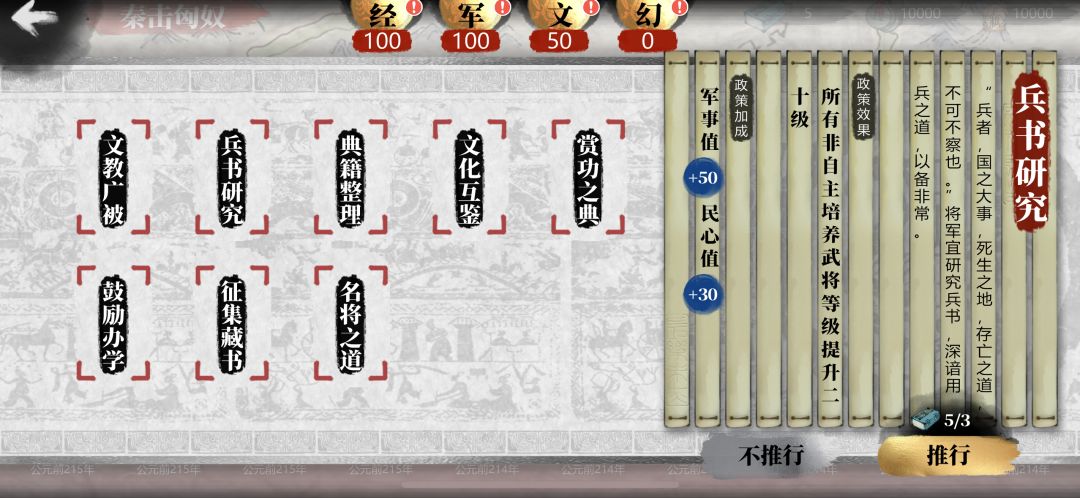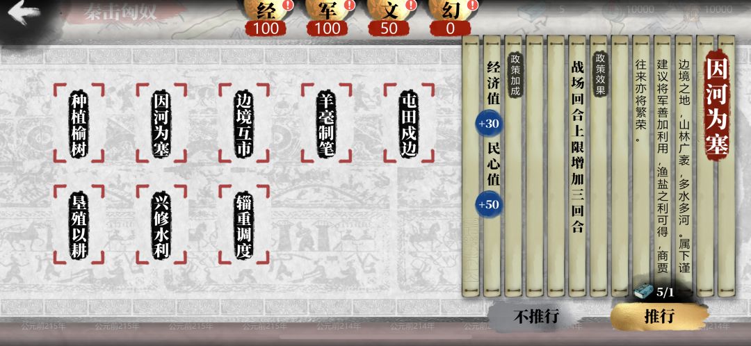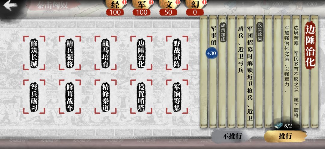 4.第一关结束后,建议政令点全加500钱粮,也就是说从第二关起,保证每关结束后都能拿到1500钱粮。
