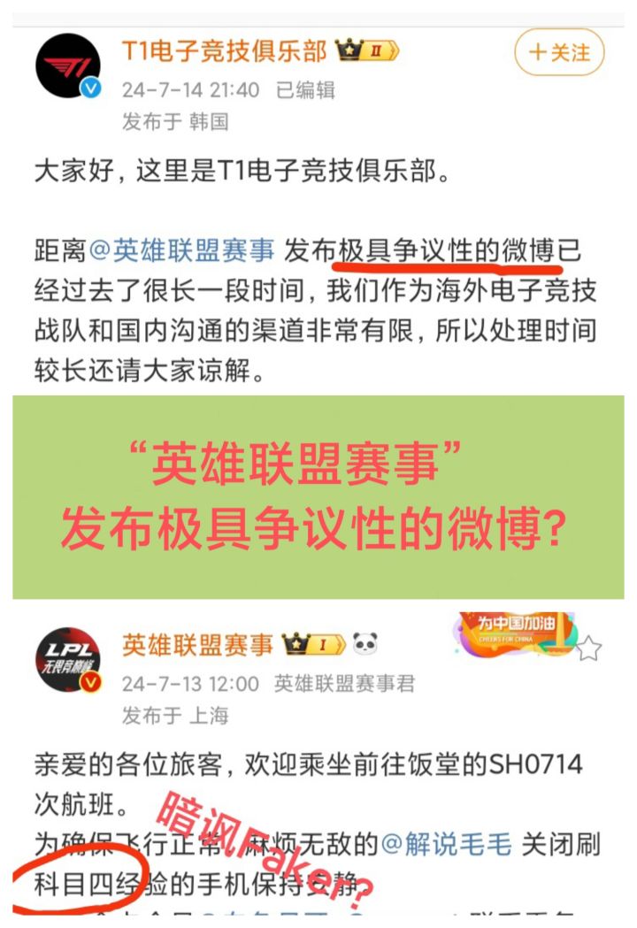 “英雄联盟赛事”官博发布了极具争议性的微博,