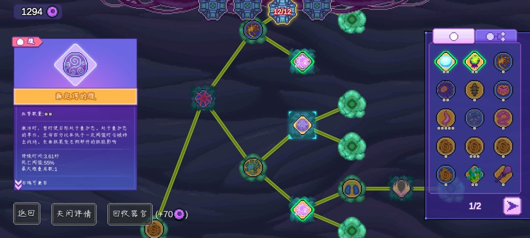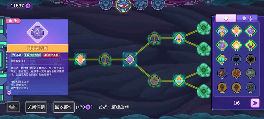 无尽咕咕效能可以一直叠加,用高效能的蓝色呼吸系统(肺)→薛定谔的腹,斩杀线(死亡阈值)能叠加超过100%,怪物进入范围内,受伤后就自动斩杀(机制杀)。