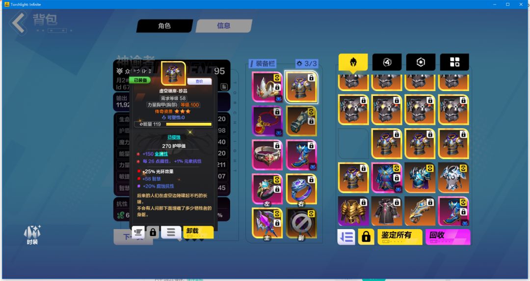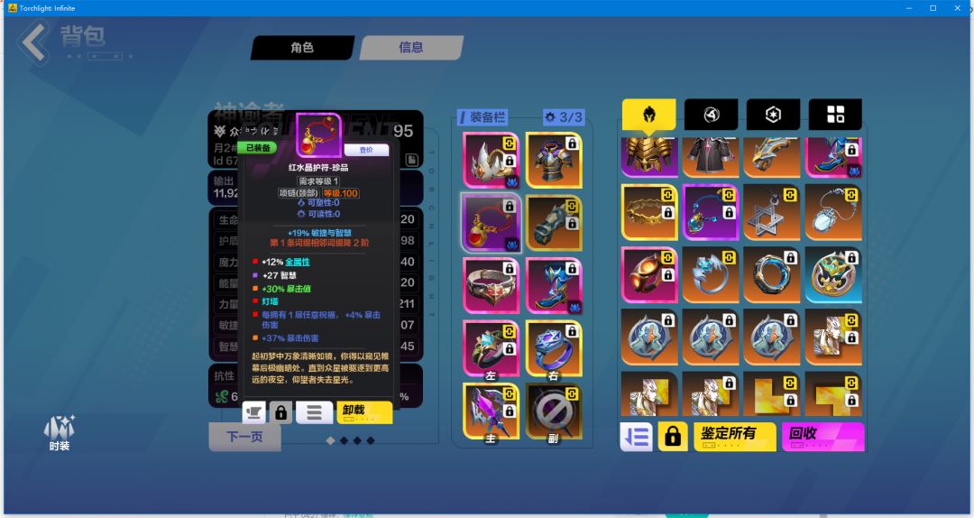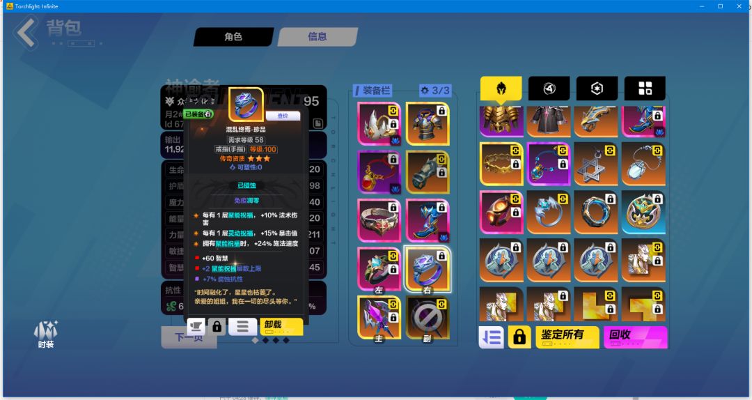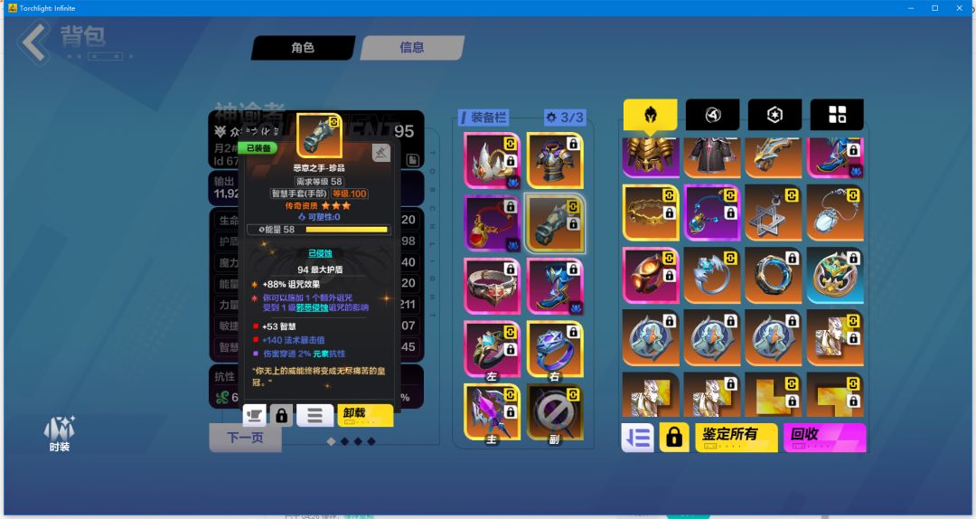 手套:我的想法是不要那点智慧,敲战意+暴击值+等级,当然有实力的全都做,不要元素穿透我们是腐蚀