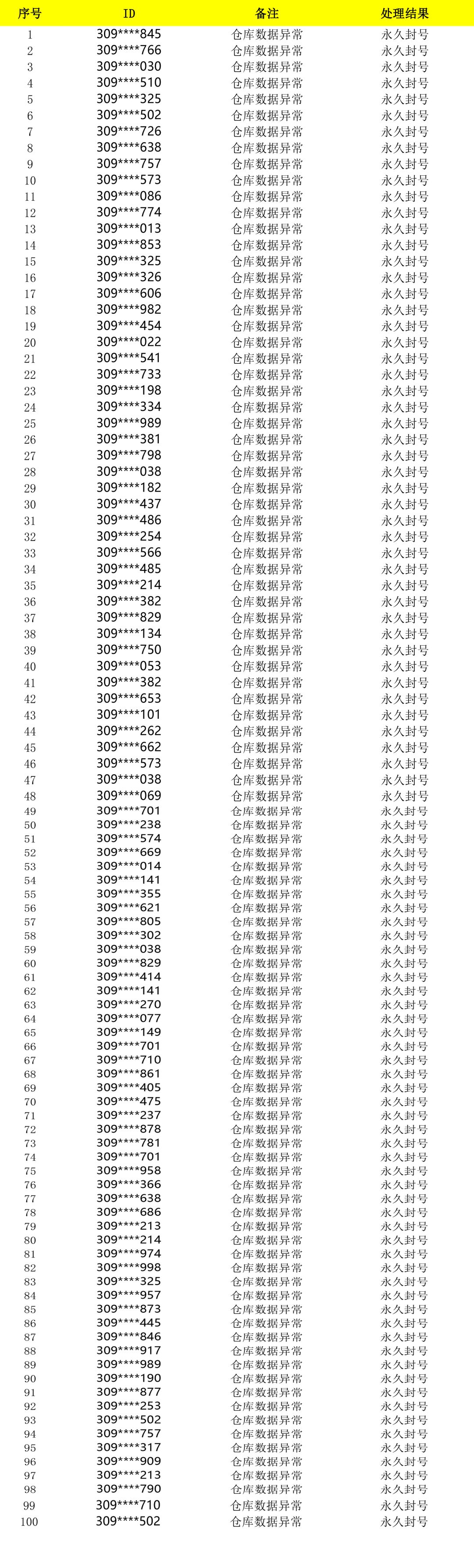 本次行动针对部分渠道账号进行核实,从严查处游戏内数据异常行为,市政工已收集了相关违规账号信息,并对这些玩家进行了永久封号处理,将于此公告中予以公示。