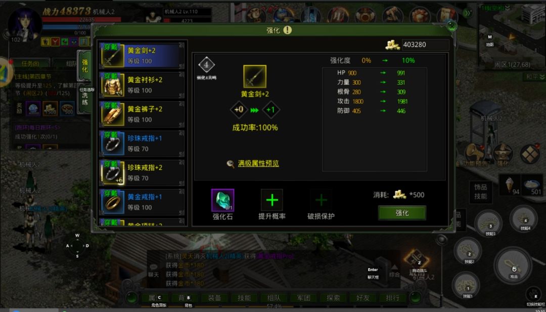 装备强化是《红月战神》中最基本且关键的实力提升途径之一。玩家仅需消耗强化石与金币,即可提升装备基础属性,强化级别从1至6级,若强化过程中失败,装备并无损失,仅会降级;然而,自强化等级达到7级起,失败将有可能使装备彻底粉碎。为规避此问题,玩家可借助“星河砂”或“永恒石”来防护装备。前者在败北之后将强化等级归零,后者则能确保等级稳固不变。如此设定提升了游戏策略深度,同时保障了用户投资安全。