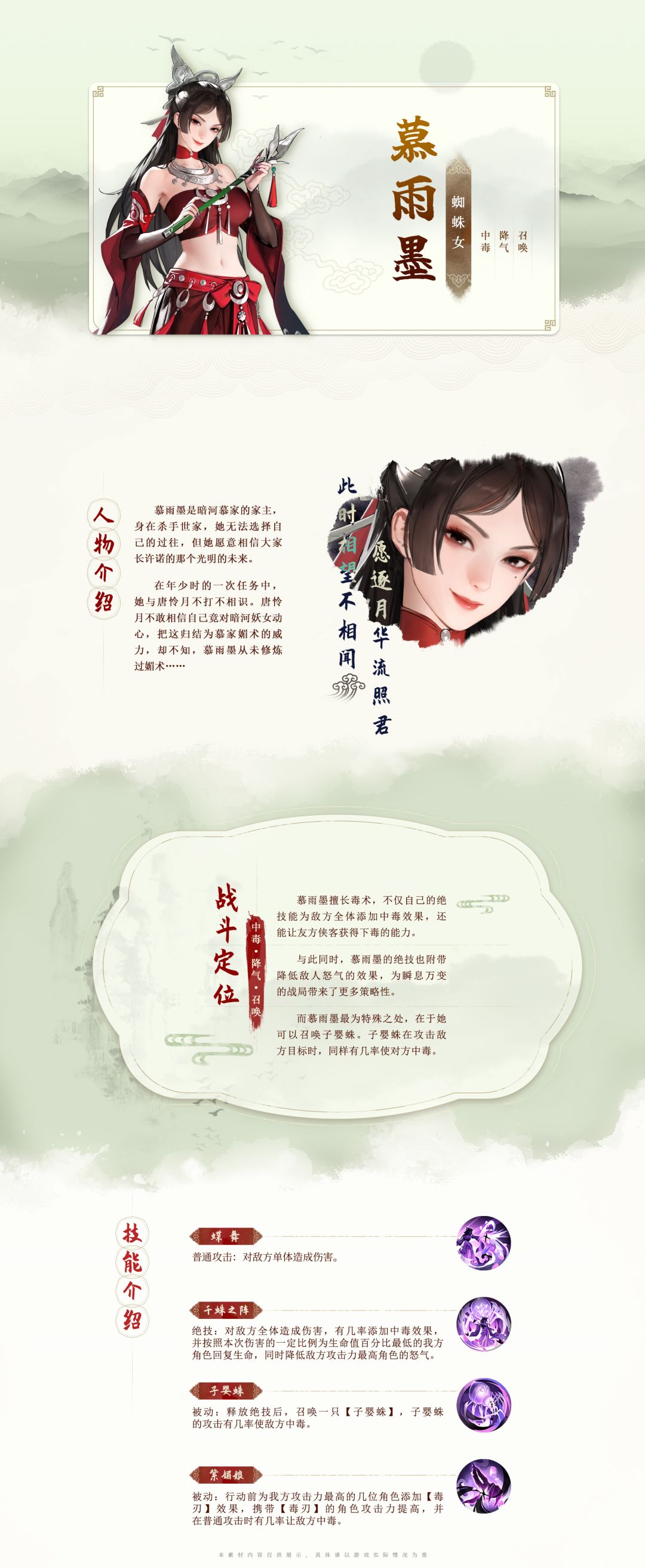 今天本汪就带大家来揭开这个神秘流派的面纱吧!有请我们美丽的暗河慕家家主——慕雨墨姐姐登场!少歌百晓堂·角色篇丨慕雨墨——此时相望不相闻,愿逐月华流照君
