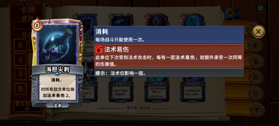 上法术易伤的功能牌则是很好的增伤手段,但由于降低过牌效率且最终boss战时不够稳定,上法术易伤最好还是通过单位牌来实现。