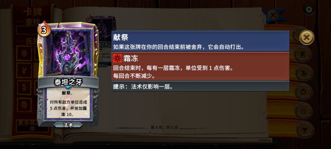 那说到这里就要正式介绍冥卫了,冥卫的特点就是高伤害的直伤法术卡牌,dlc环境下神殿提供的法术升级极大提高了冥卫的卡牌强度,可以直接把游戏玩法变成杀戮尖塔,而本游戏单位牌又不影响过牌速度,再加上冥卫的冻结效果可以留一下高费牌,很容易在每回合把高伤核心法术牌打出。