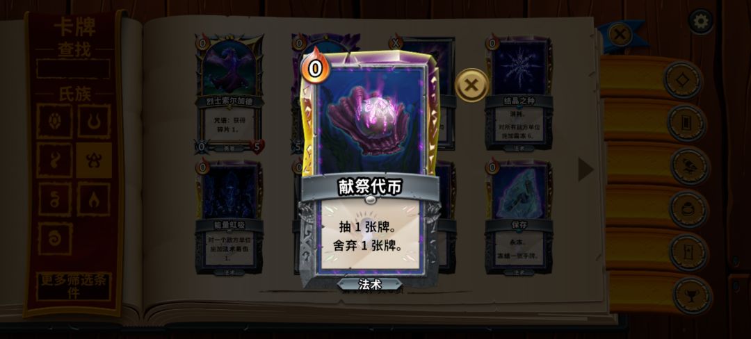 调和类的牌费用通常较高,一般需要降低费用升级或依赖勇者的法术降费,弃牌献祭的打出方法相对就没有那么稳定,希望稳定打出就比较依赖献祭代币这张牌。