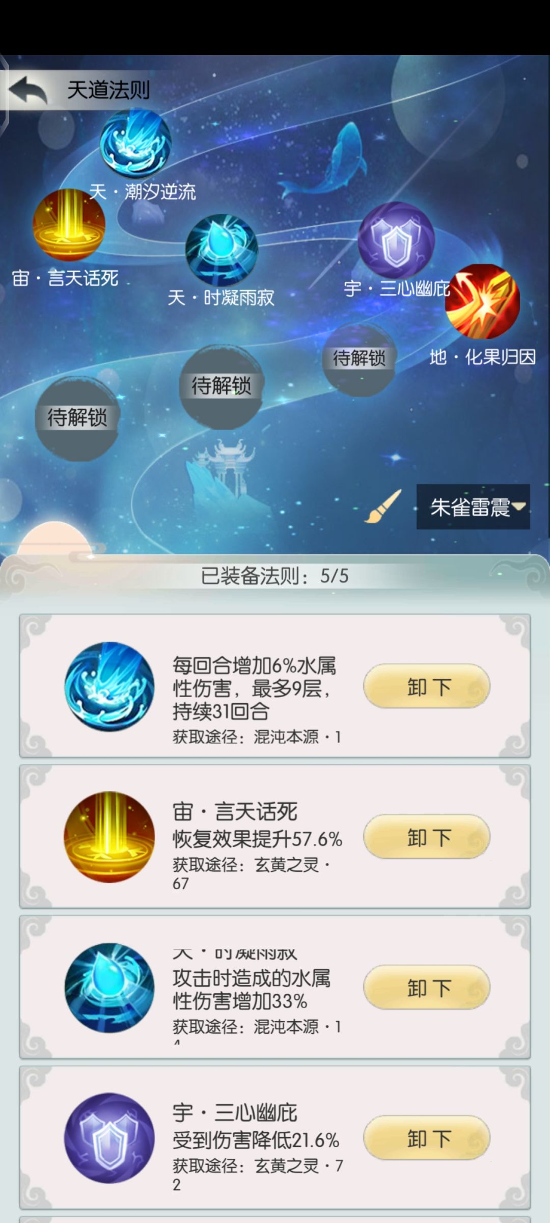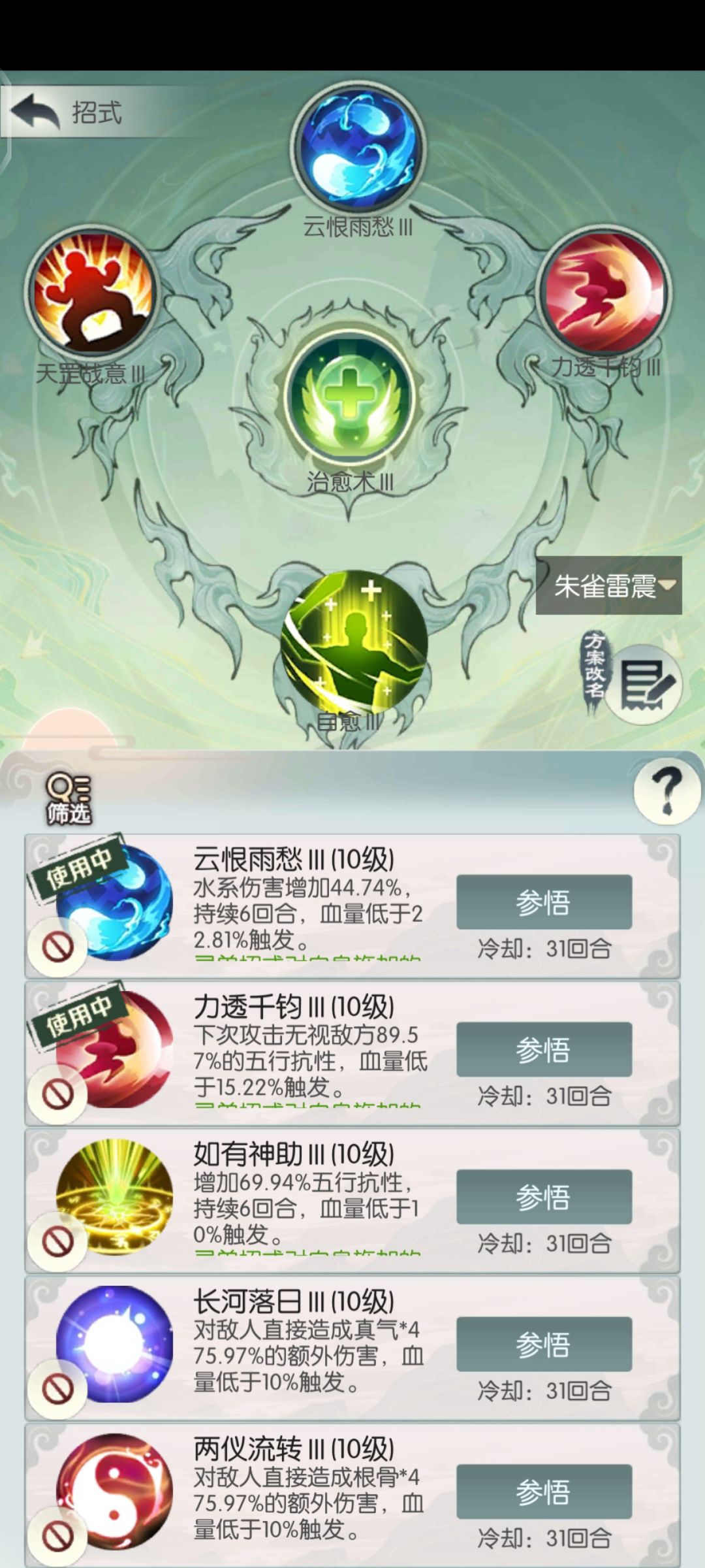 3技能:五鬼迷踪诀,乾坤挪移(神垕),血炼神光,七鬼卸甲,断浪龙印(水木系攻击),癸水封海咒(水系攻击),buff技能的图谱一定要创制,防止掠夺我们的反伤和吸血,这两个是本配置核心buff,攻击技能创制回血图谱为最佳,做到即使不能命中吸满血,也能保证血量健康。