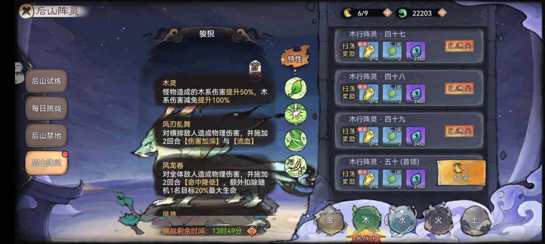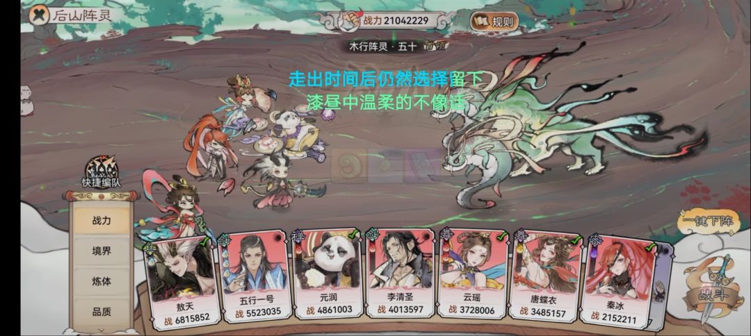 总的来说木行阵灵不算难,以前一直懒得打,这次随便点了点就一路通关了,朋友们有两千万左右加上凤魂就可以尝试通关了。