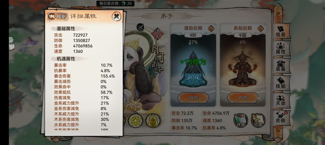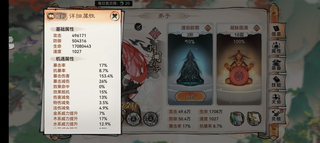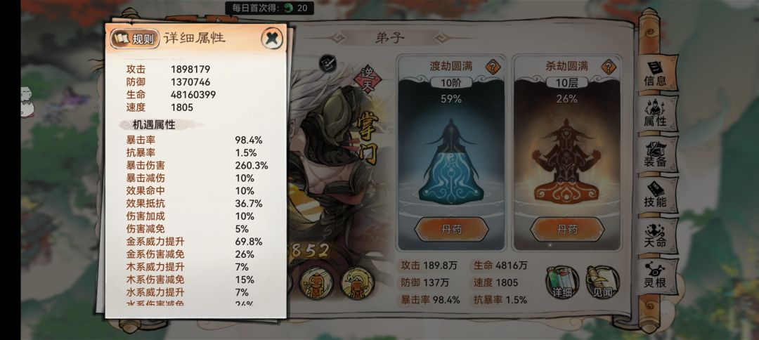 可以看到,由于是木行阵灵,所以怪物的木系伤害和减免都很高,不过由于我们一般不怎么玩木系输出技能,所以影响不大。