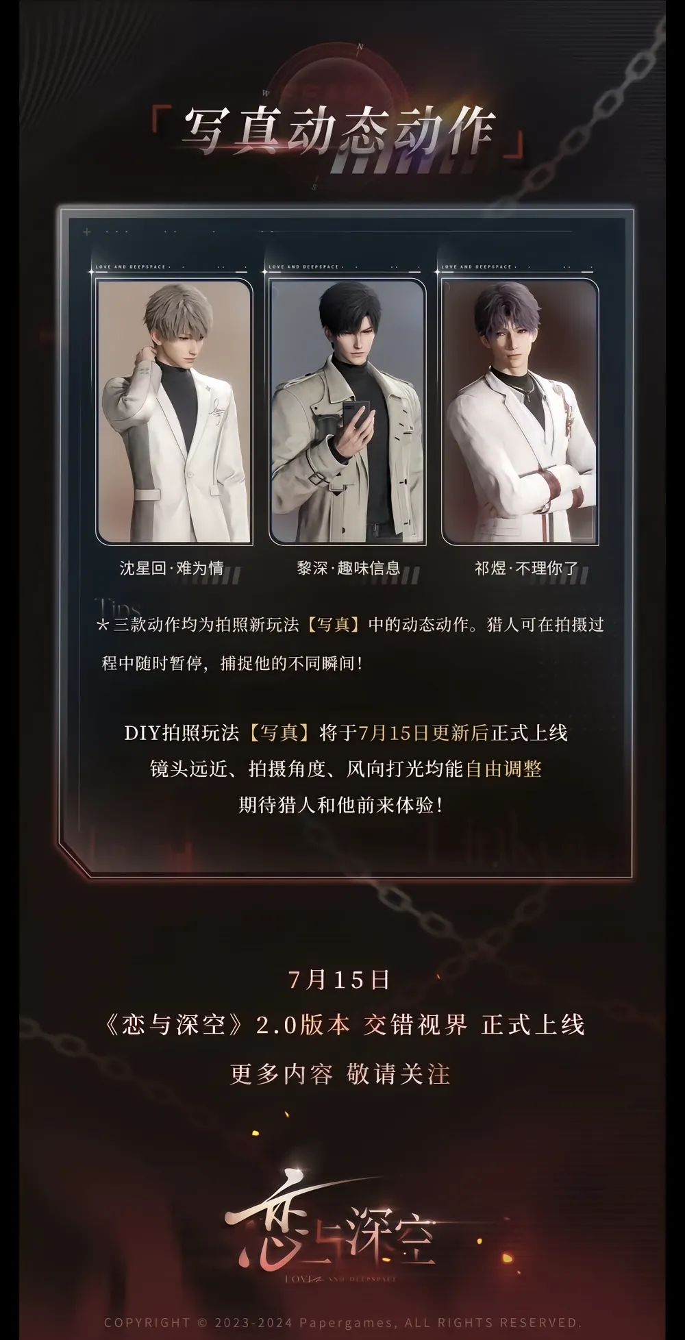 •沈星回,黎深,祈煜的写真动作,跨越光年系列服装