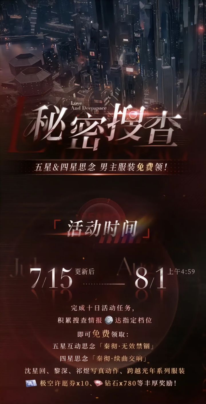 完成十日活动任务,积累搜集情报就可以免费获取•五星互动思念[秦彻•无效紧固]