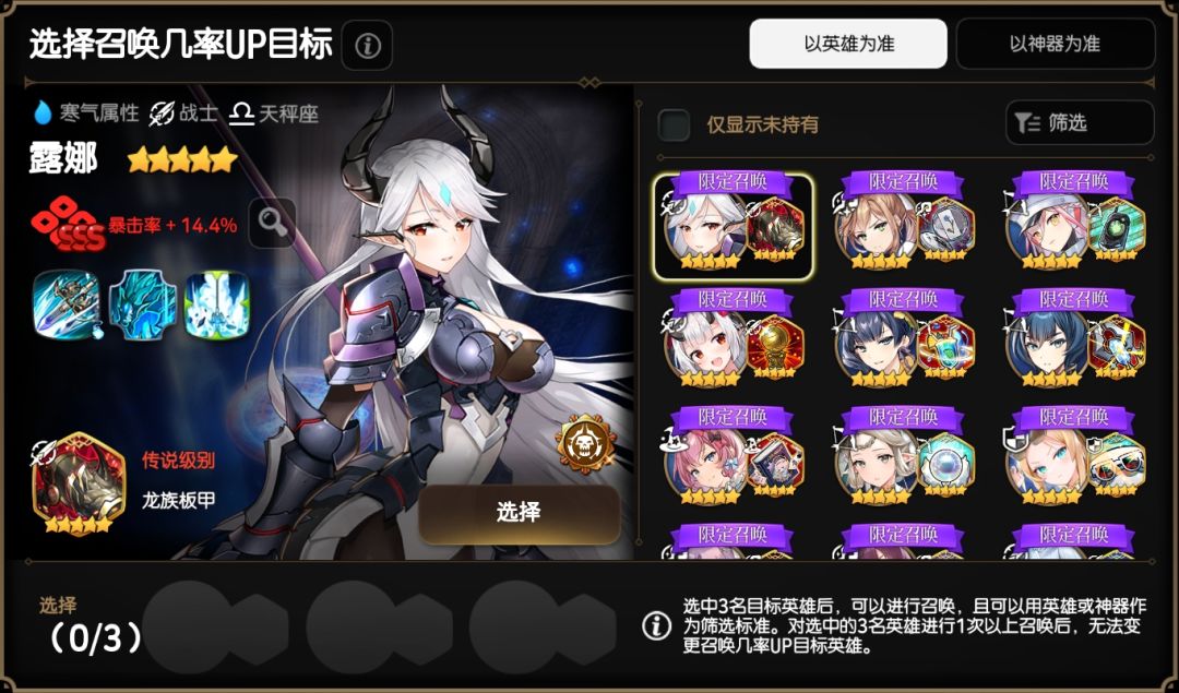 - 在进行1次以上自己所选择的3名英雄组合召唤后,便无法变更召唤几率UP的目标英雄。