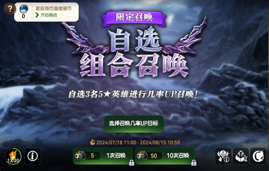 - 选择的英雄进行召唤1次以上起为期14天内,可进行「自选组合召唤」。