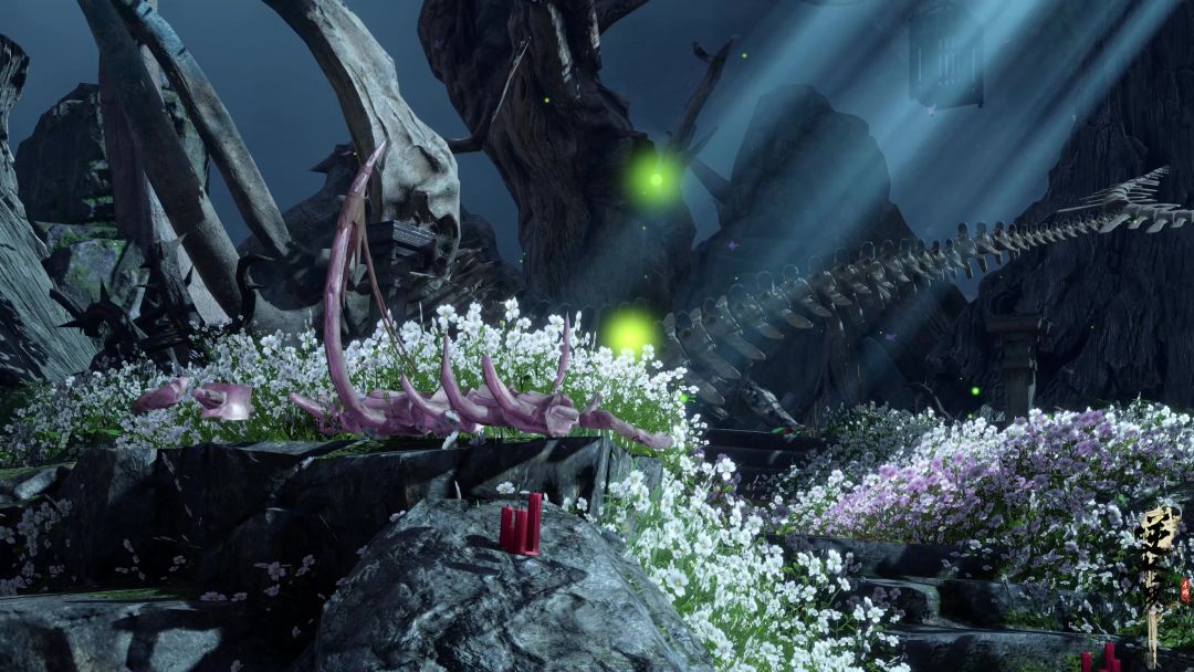 惑心从白骨,常自寂灭相。全新时装【白露惑心】更以精美骨雕作为饰品,或点缀于发间、或装饰于手指,还有白骨之花幽然绽放于身侧,惑人心神,神秘莫测。
