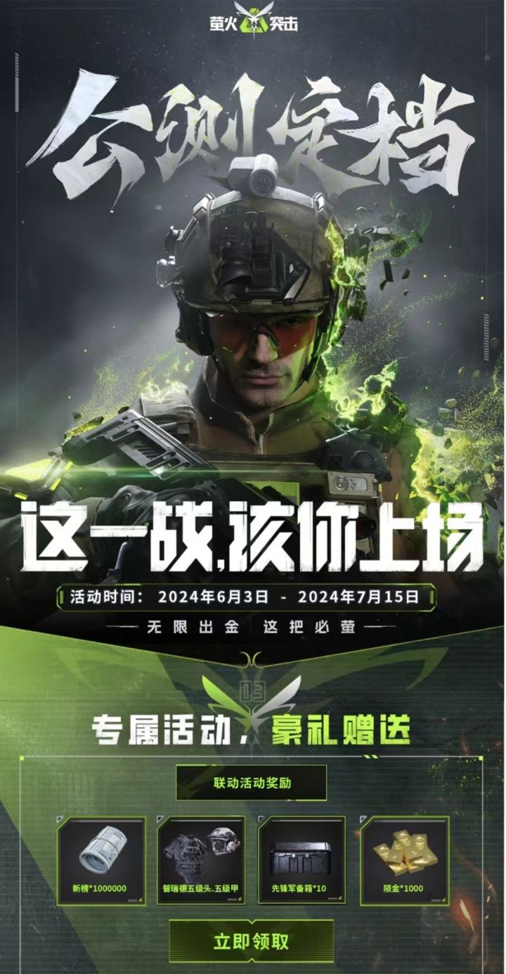 公测联动赠礼:陨金x1000 新榜x100000 先锋军备箱x1000