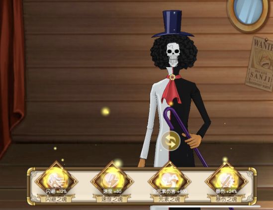 魂卡洗练:速度或闪避,取决于各位船长选择的流派,高速爆发输出或者高闪避协助乌索普回归。