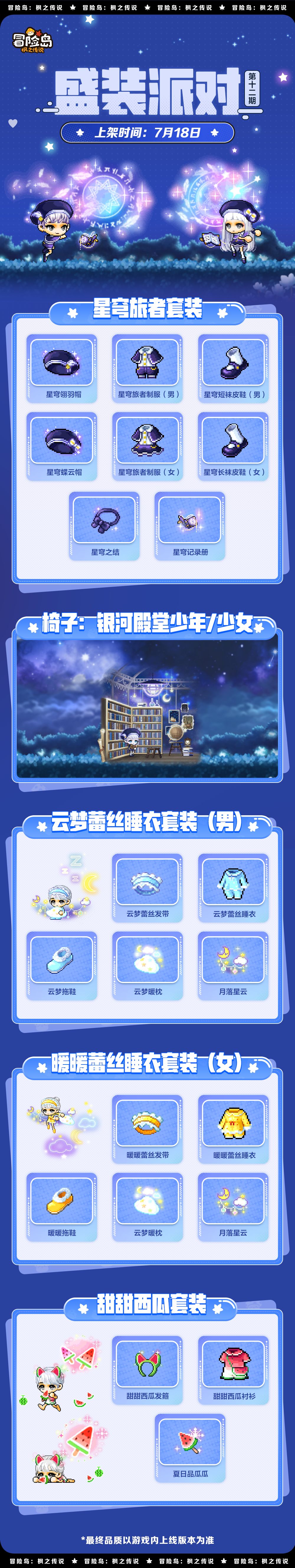 同期还有「云梦蕾丝睡衣」套装、「甜甜西瓜」套装上架,欢迎冒险家们7月18日前往游戏内外观商店挑选喵~