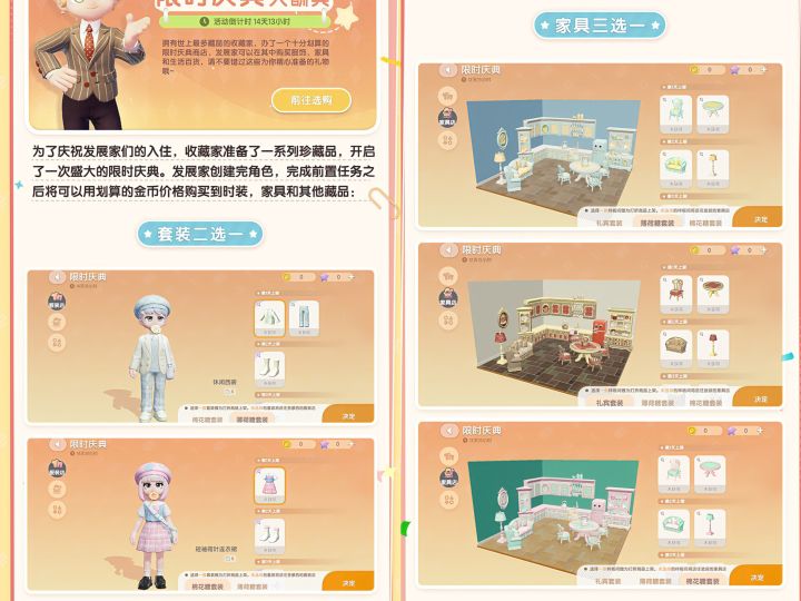 3:收藏家限时庆典。 ( [薄荷糖]和[棉花糖]两款套装中选择一款,在后续以超值的金币折扣购买福利)
