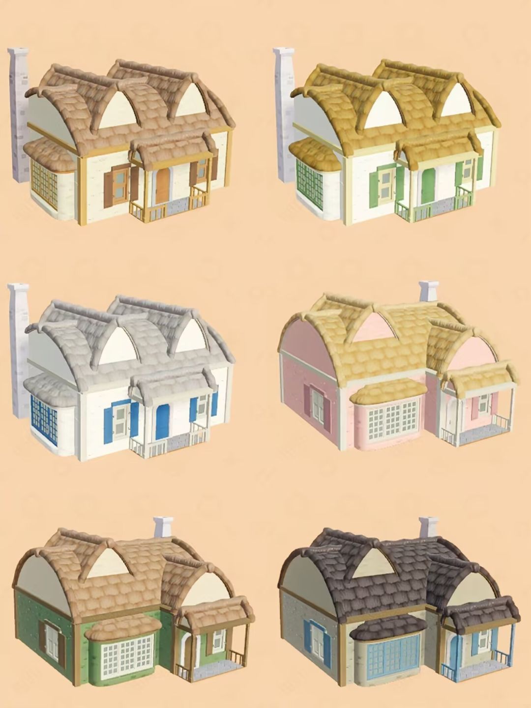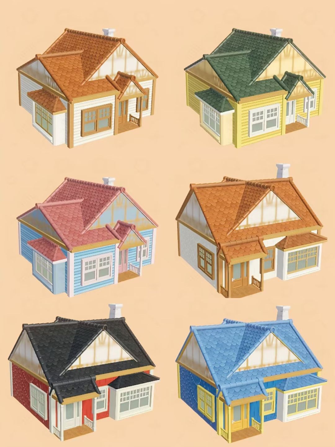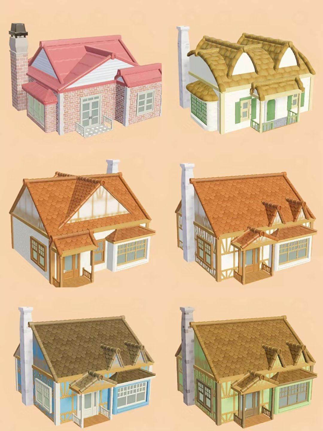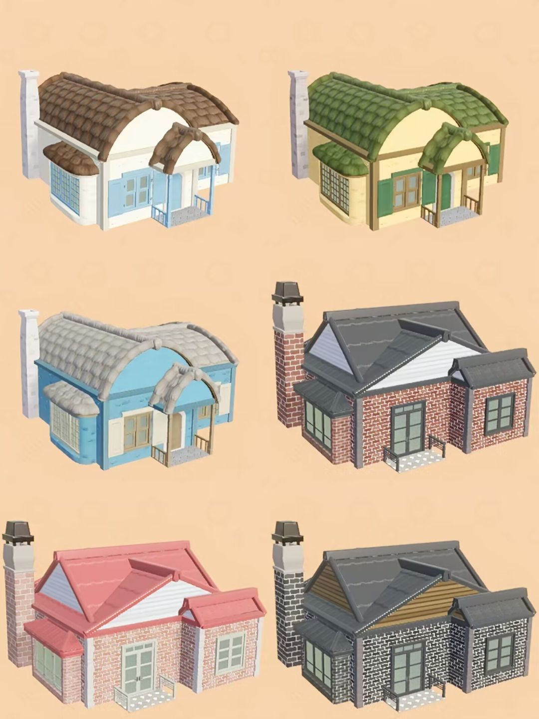 2:个人感觉粉红色和蓝色的两座初始房屋形状外观还挺不错。