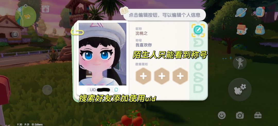 6.地图中陌生人只能看到称号,加好友后可显示昵称。搜索好友添加时使用uid。