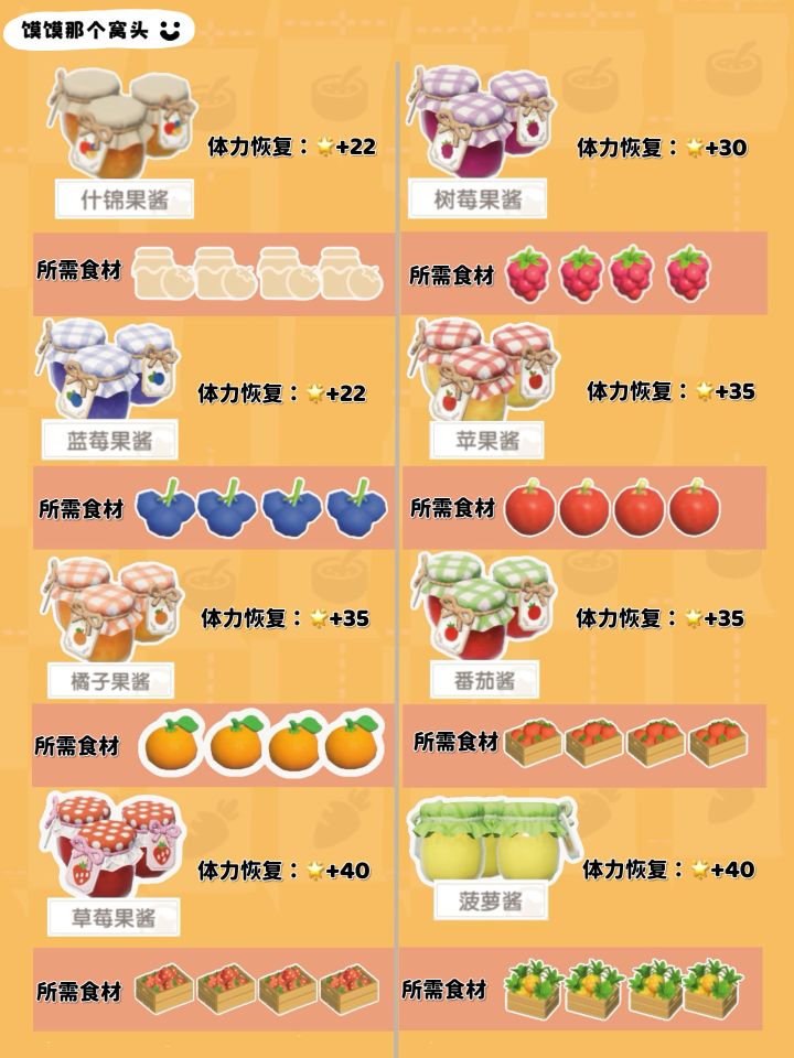 3、果酱食谱中除去菠萝酱和草莓酱、番茄酱,其他的通过采集后按照什锦果酱食谱烹饪一次就可以解锁;