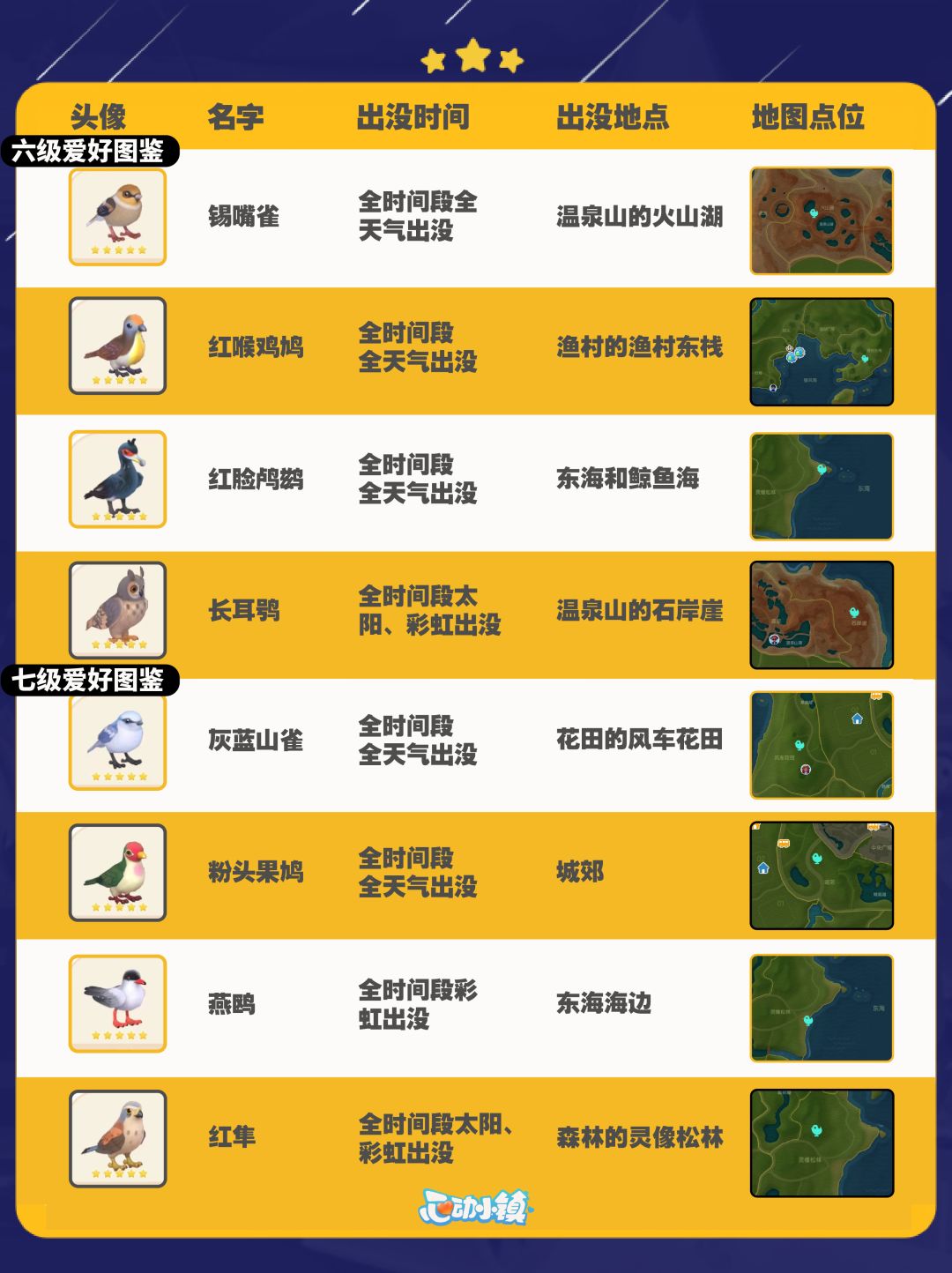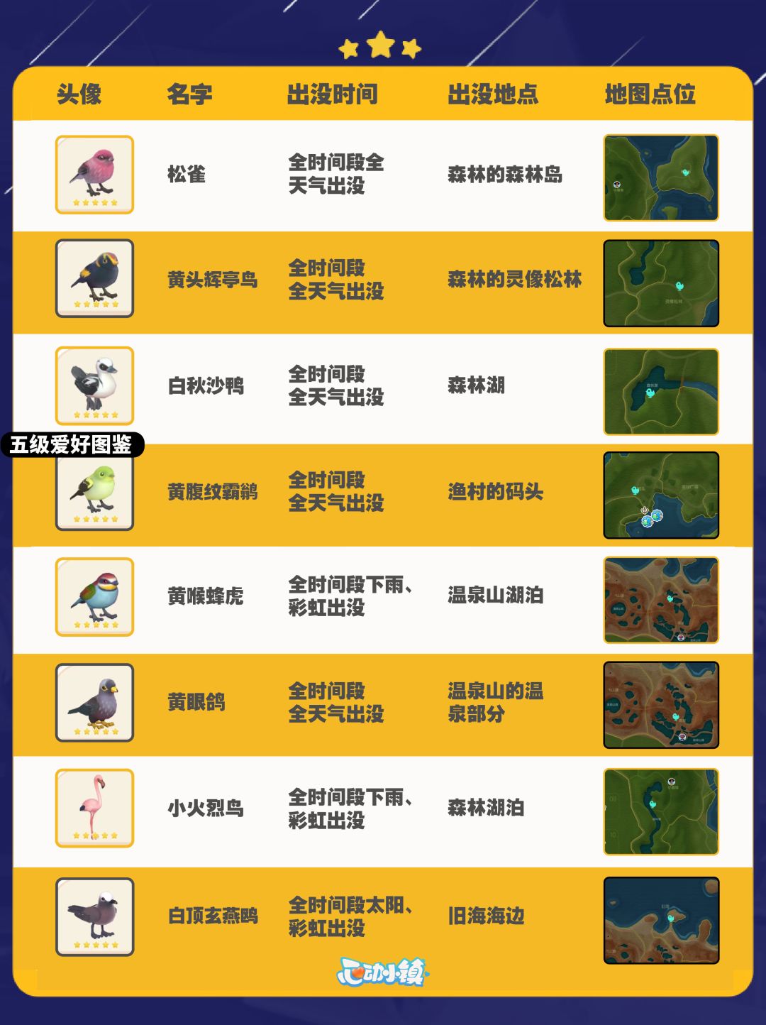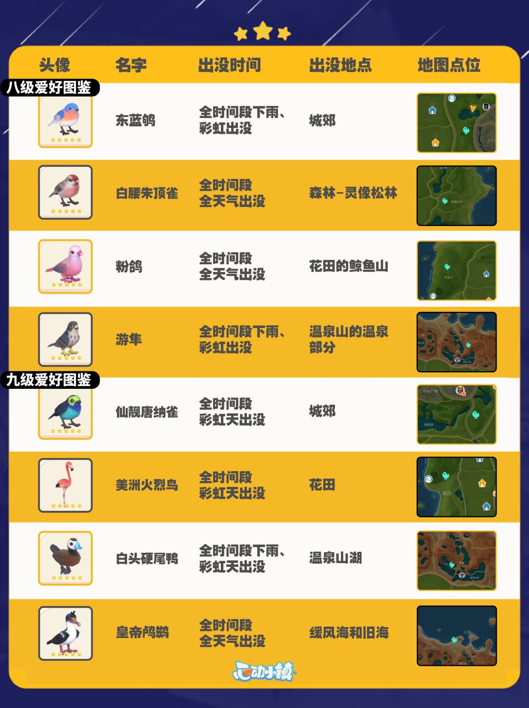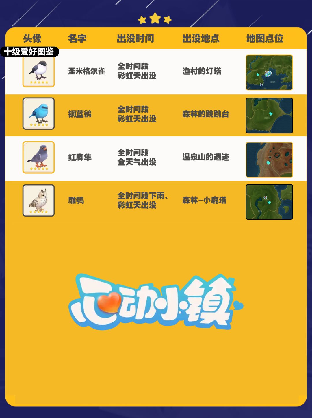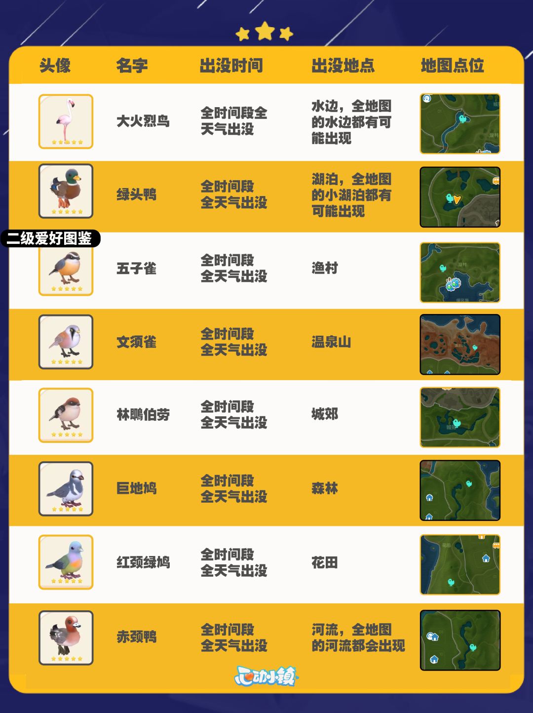 心动小镇全鸟类图鉴及拍照技巧分享~
