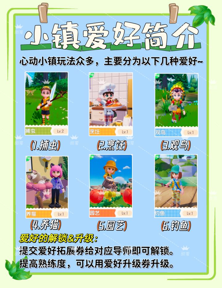 爱好有对应的熟练度和升级系统,首先要提高熟练度,其次通过发展家协会和图鉴积分奖励,获取爱好升级券,来提升对应爱好等级,解锁所有爱好玩法!