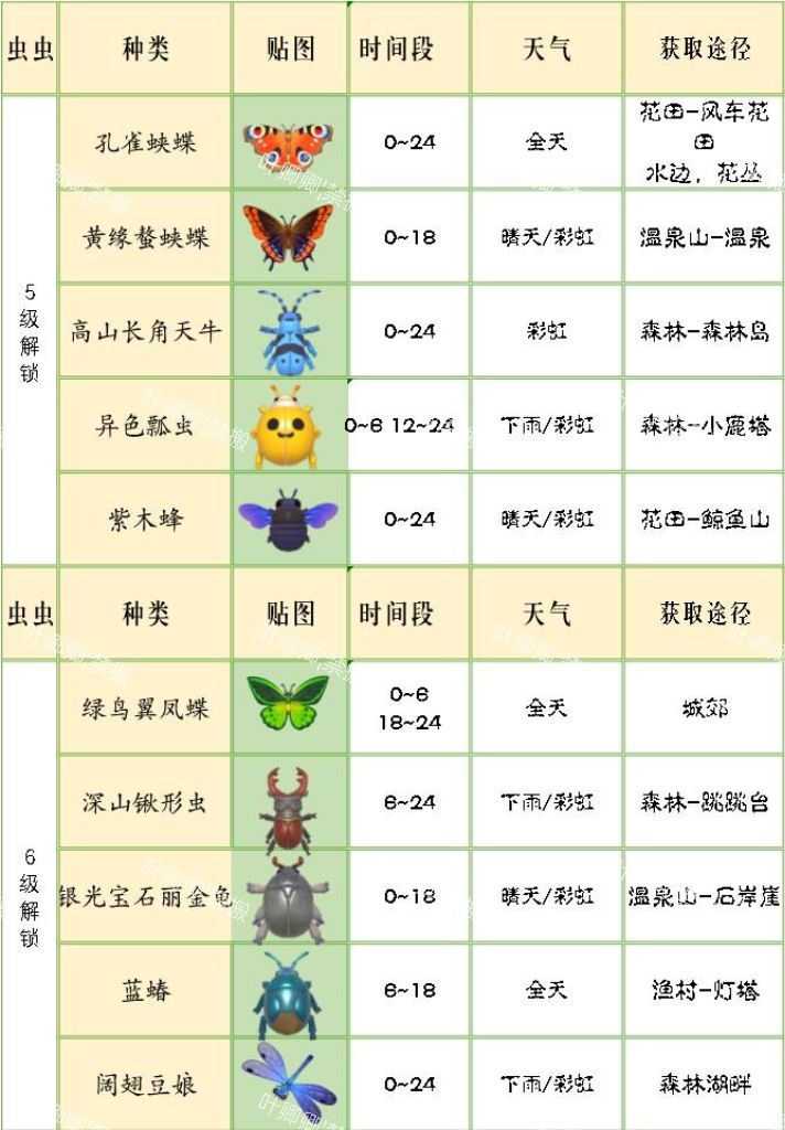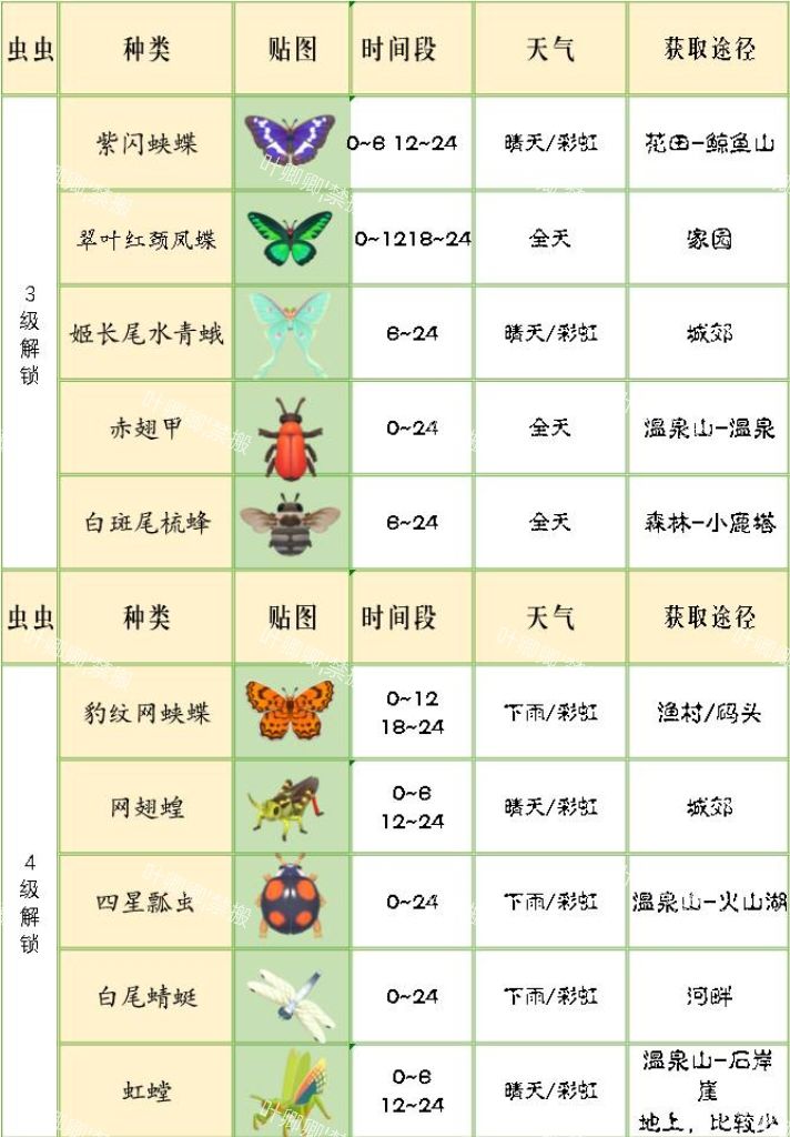 【已完结】心动小镇最新版捉虫爱好一览