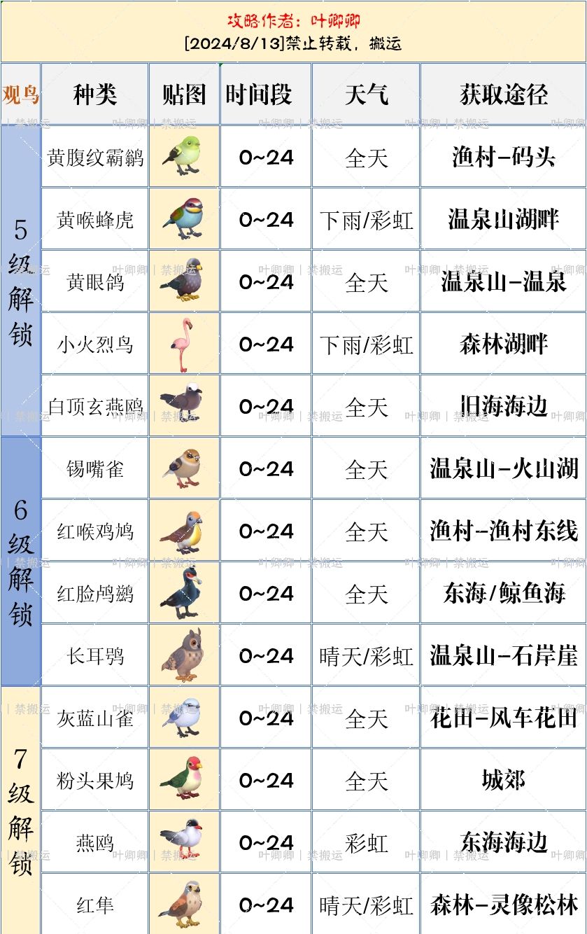 『完结』心动小镇最新版观鸟图鉴