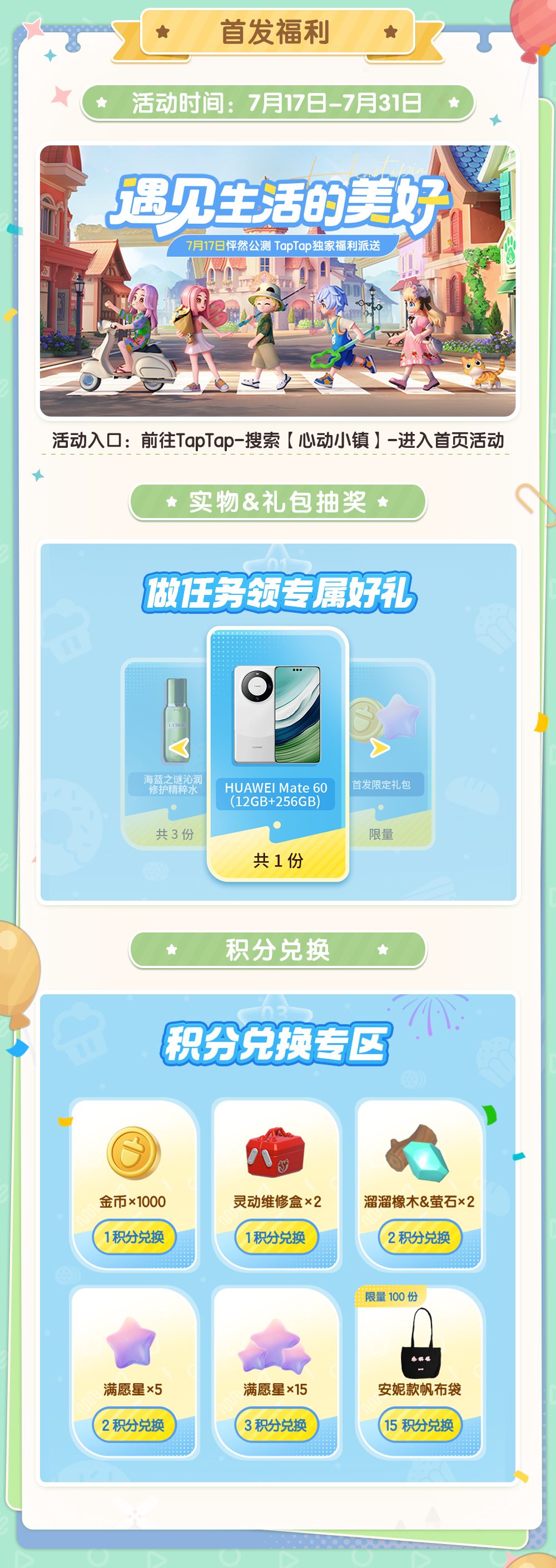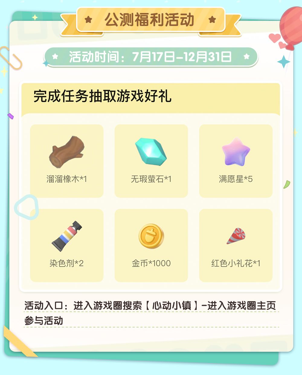 慢节奏生活模拟游戏《心动小镇》7月17日已正式开启公测!喵喵在各官方社区平台为发展家们准备了多重活动好礼,想要拿走全部限定奖励的发展家,记得收看这一期的