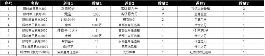 单日累计充值达到指定额度可获得相应奖励,高档位可以领取低档位奖励,每个档位仅领取一次。