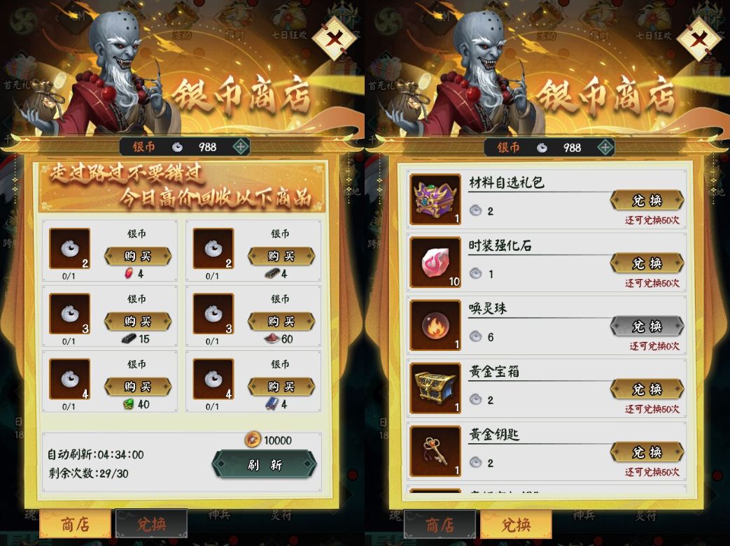 全新银币商店开启,支持使用不同类型资源兑换银币,银币可在银币商城中兑换指定商品。
