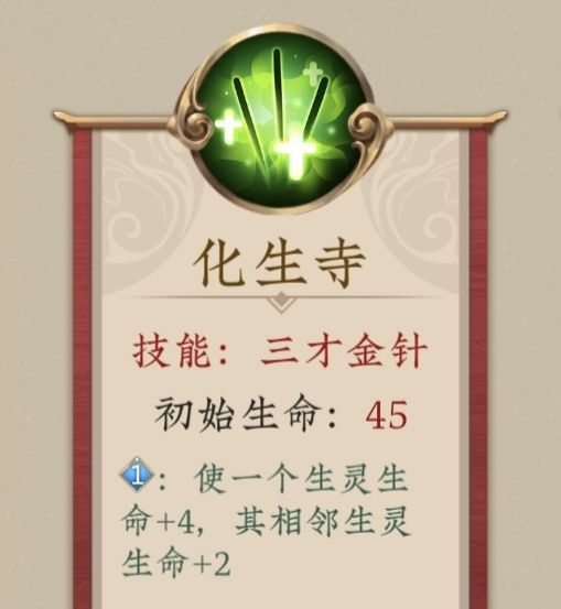 现在木系和金系都比较全面,有解场、有续航、生物攻高血厚,非常推荐大家使用。金木生物进场、离场效果较少,多靠持续站场获得收益,和化生寺的回血相当契合。遇事不决化生金化生木,谁用了不迷糊?