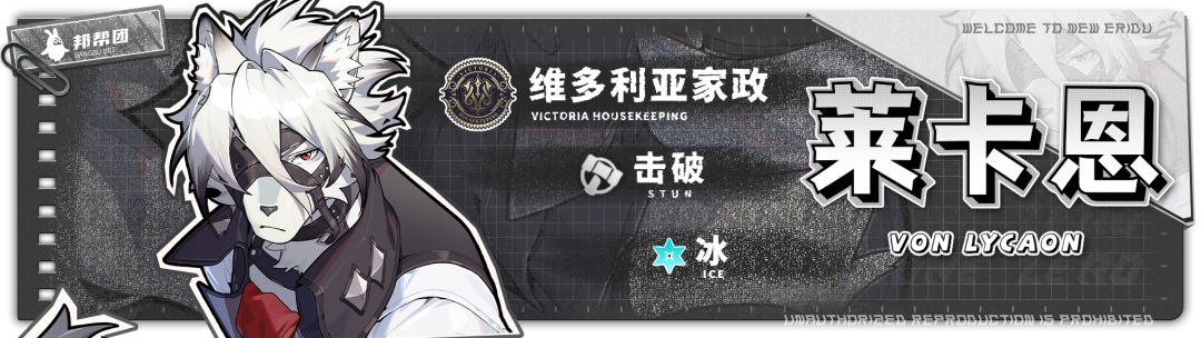 各位绳匠们大家好呀,这里是【邦布邦邦团】的墨菊,今天带来的是【维多利亚家政】阵营,S级别的冰属性击破角色——【莱卡恩】,私底下大家常常称呼“狼哥”“狼叔”的帅气狼希人绅士。咳咳,话不多说,奉上攻略!