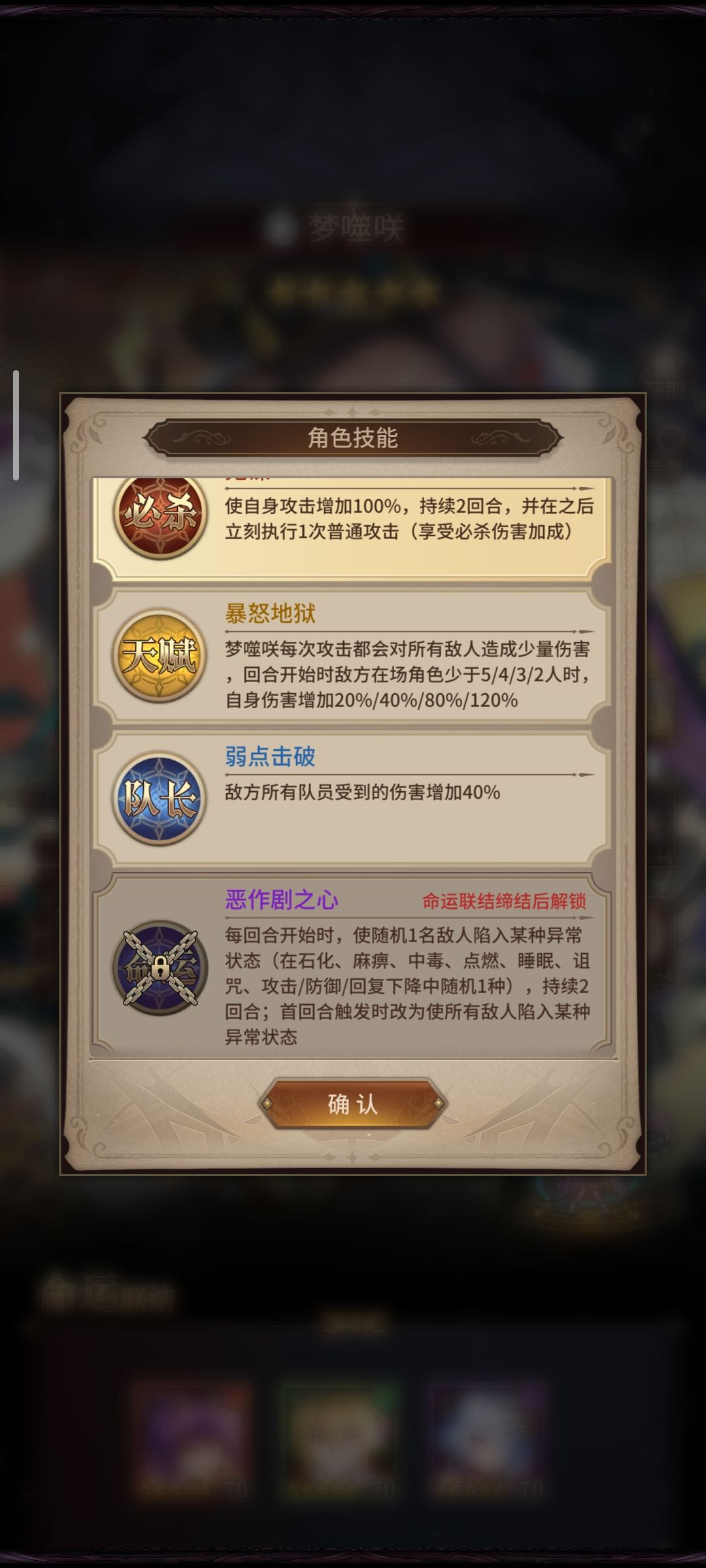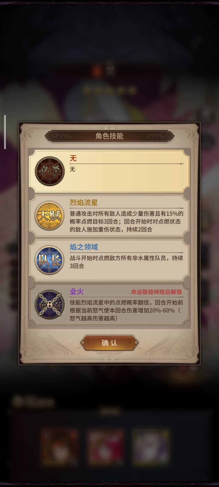 可以在角色>碎片兑换>筛选5星>筛选对应属性,查看角色的具体技能