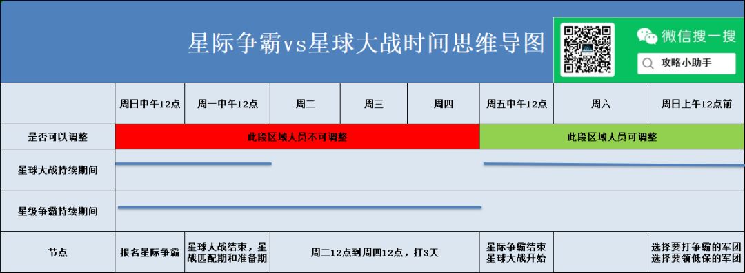 所以,结合一下星球大战的时间,我们可以这样理解:周日上午12点前,找好领星战低保的团,然后加入本团,周一上午挖1稀土,领取对应军团的段位星战军团奖励(低保),同时作为本团争霸的人员报名争霸。报名后,如果要为本团争霸出力,则周二中午12点前回来,然后打争霸,到周五结束。直接继续打星战。如果不想为本团争霸出力,可以再外面浪,浪到周五中午12点前回来,领一下低保。然后星战开始后,继续退团继续浪,直到周日上午12点前,重新找一家领星战。此番操作,无论是星际争霸还是星球大战,个人部分的积分/稀土,都会很低,就是单纯的领低保了。所以,对大部分的人而言,建议呆在一个团,循环两种活动。如果要调整,选择周五中午12点后到周日上午12点前进行人员调整即可。