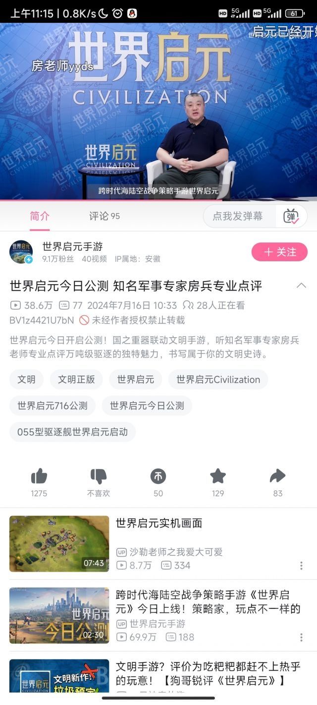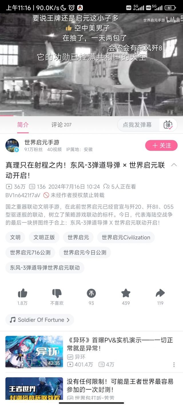 世界启元在7.16宣布了东风3弹道导弹联动和055驱逐舰联动并邀请了知名军事专家房冰,游戏畅销榜和免费榜成绩都很不错