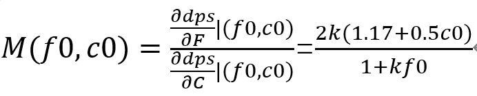 于是现在我们可以定义一个新的变量,M=dps对F的偏导/dps对C的偏导。这个变量表示,当我们减少“1”攻速时,我们需要增加“M”的暴击,才能使得伤害大约不变。