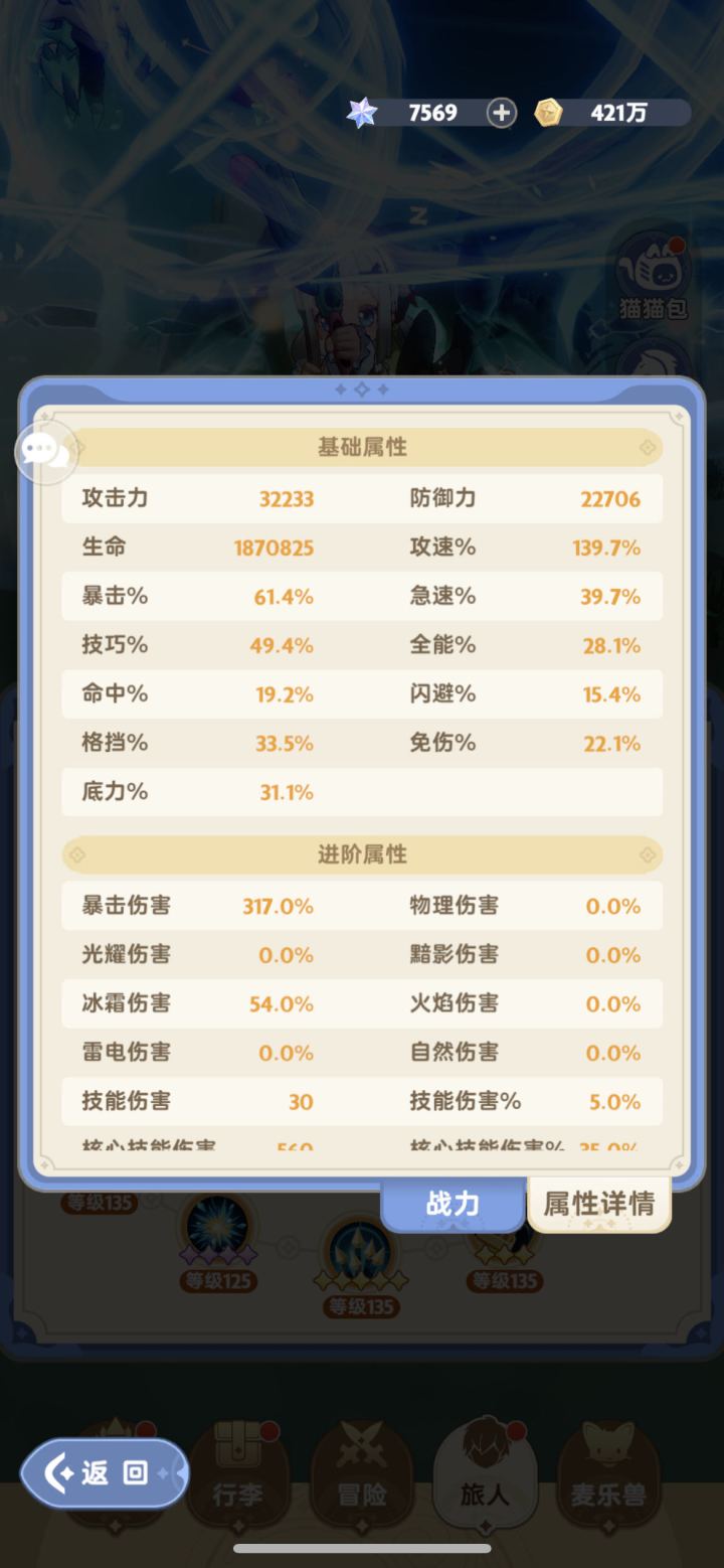 3.面板调整,各方面更均衡: 暴击61.4,技巧49.4,急速39.7,全能28.1,命中19.2(有硬币) ,爆伤:317